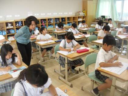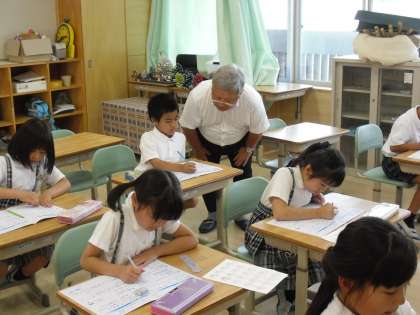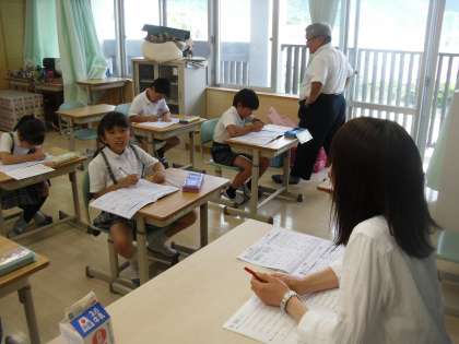 3年生の希望者に算数の学習です。放課後学習支援の先生方が丁寧に教えています。