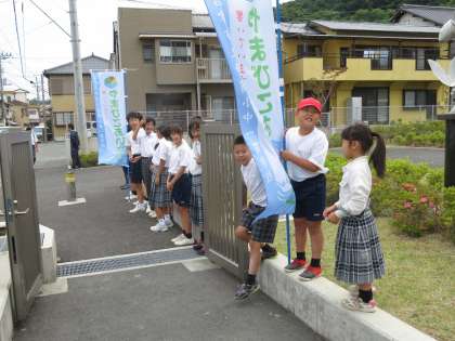 2カ所に自治会執行部と縦割り班が、元気よく挨拶運動を実施してくれてます。