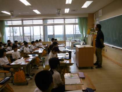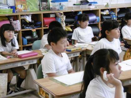 スピーチの学習です。スピーチでは、「わたしの好きなこと」の紹介をします。まずは先生がモデルを示し、みんな楽しそうに聞いていました。