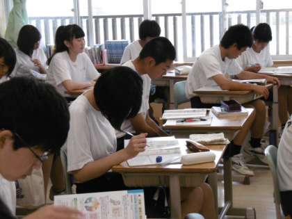 保健の学習をしています。「運動やスポーツが心に与える効果」について学んでいました。さすが9年生、大変落ち着いた学習態度です。