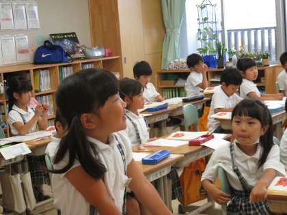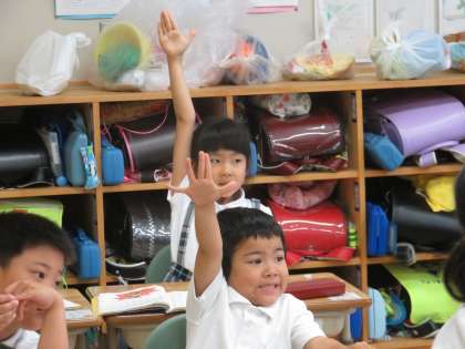 1A国語 たぬきの自転車について みんな意欲的に発表頑張っています。