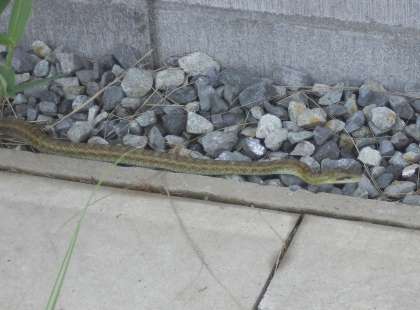 大グラウンド南側テニスコート付近に体長1mほどのヘビを発見しました。