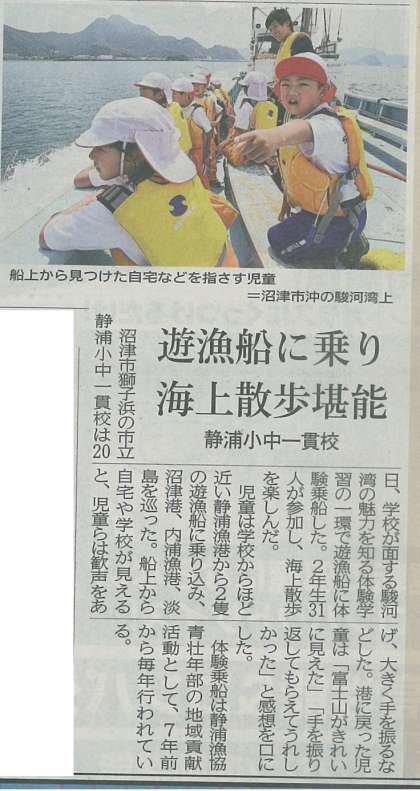 本日付静岡新聞と6月21日付朝日新聞 静岡版に先日行った2年生の漁船乗船体験の記事が掲載されました。
