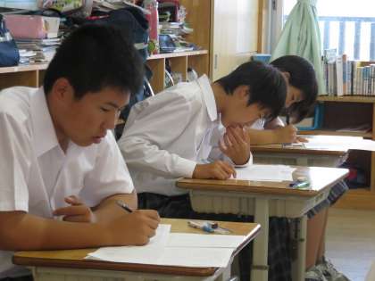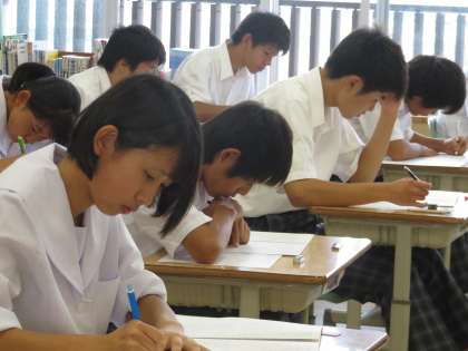 9A国語の期末テストです。今やるべきことを頑張る一貫校の子どもたちです。