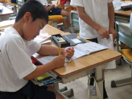 2A算数 テスト返しの様子です。テスト直しをしっかりしましょう。