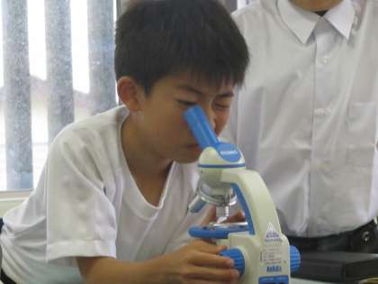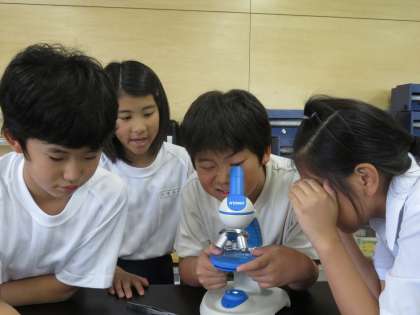 5A理科 顕微鏡で微生物の観察です。自分たちで微生物がいそうな水を組んできました。