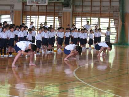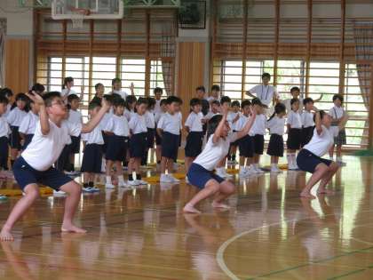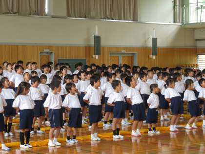佐藤応援団長、応援団の指示で、初志部、立志部の「魂を一つ」にして応援しています。