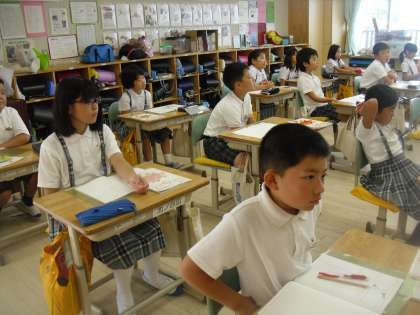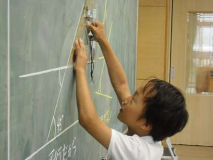 4年生は算数で角について学習していました。分度器を使いながら友達に説明していました。