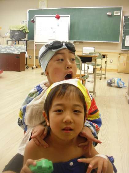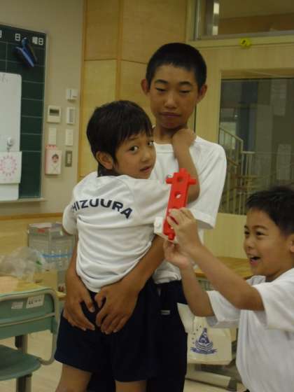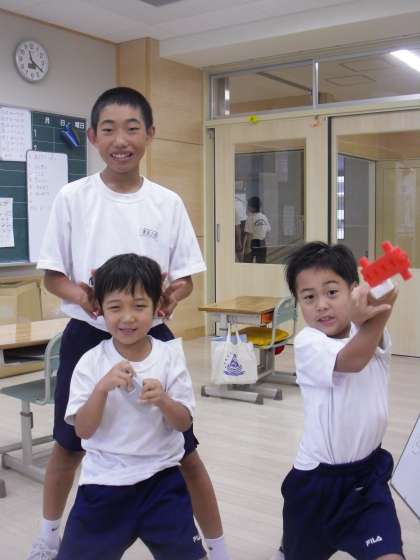 小中C組の様子です。休み時間になると小C組にお兄さんがやってきて、一緒に遊んでくれます。