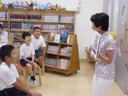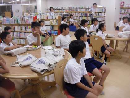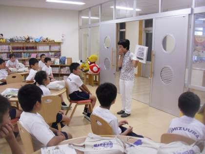 今朝、4年生は図書館司書によるブックトークを行いました。子どもたちは楽しんで話を聞いていました。