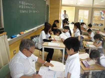 3年生の希望者に算数の学習です。放課後学習支援の先生方が丁寧に教えています。