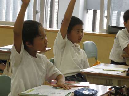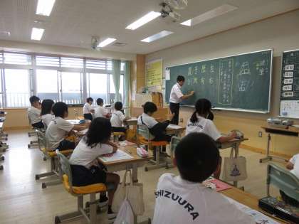 4A書写 硬筆の練習です。指で書き順も含めて練習しています。