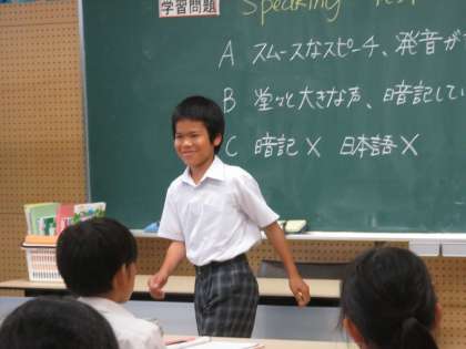 7A英語 スピーキングテストです。堂々とスムーズにスピーチができるように頑張っています。
