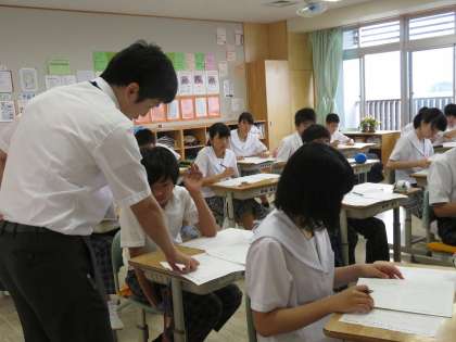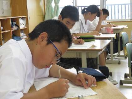 8A国語 テスト返しですが、もう一度解いています。文法が中心だったようですが、結果はどうだったでしょうか。