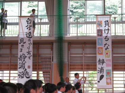 吹奏楽部です。7,8年生で7月末の東部吹奏楽コンクールに向けて頑張っています。