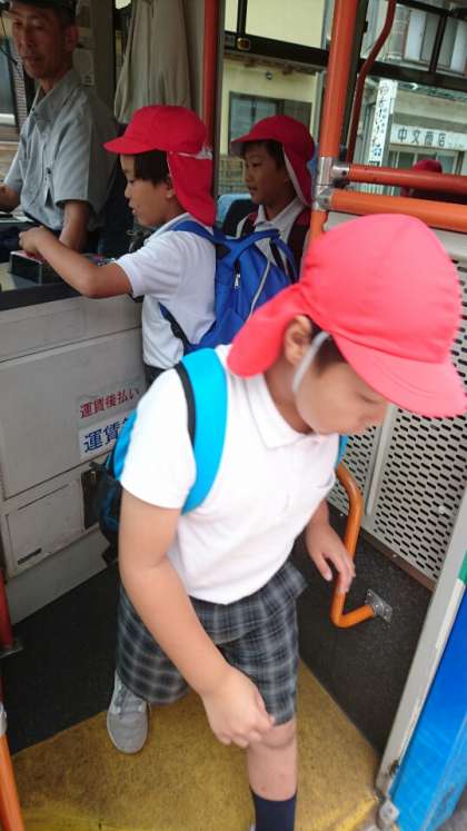 獅子浜バス停に到着しました。事故なく無事に戻ってきました。午後は社会科見学の振り返りです。