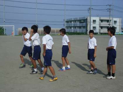 サッカー部はセットプレイからのシュート練習を行っていました。