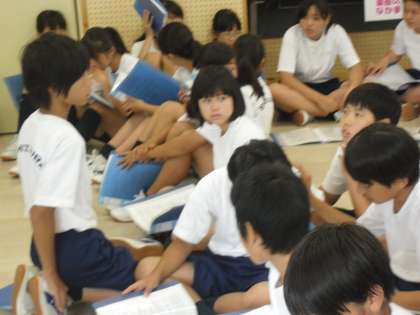 7年生は音楽で、曲を聴きながら合唱曲のパート決めを行いました。