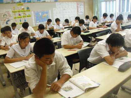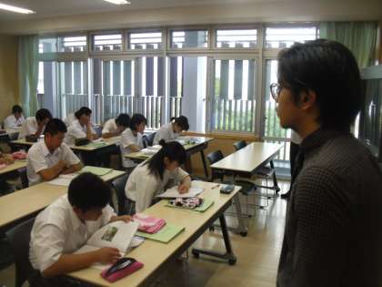 9年生は英語で「かわいそうなゾウ(英文)」の長文読解を行いました。集中して聞いていました。