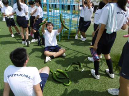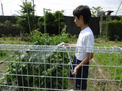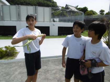 栽培の授業です。今日はキュウリやトウモロコシなどを収穫しました。トウモロコシを皆で味見し、「おいしい」という声があがっていました。