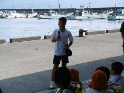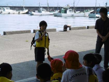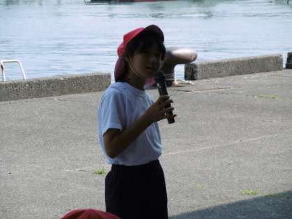 1位、2位のチームの艇長さん、5年生の中の1位だったチームの艇長さんが、今の喜びの心境とチームメイトへの感謝の言葉を述べています。