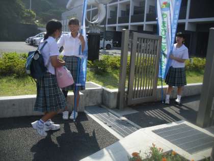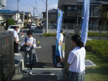 毎週恒例の自治会あいさつ運動の様子です。自治会担当の生徒を中心に互いに気持ちのよいあいさつをしていました。