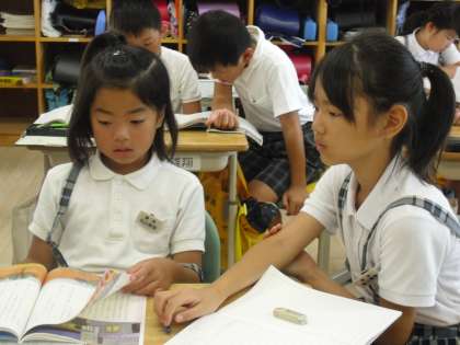 4年生は国語で「物語文(ポレポレ)」を学習しています。今日はあらすじについて友達と意見交流をしました。