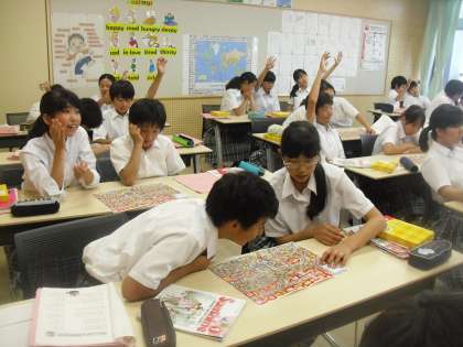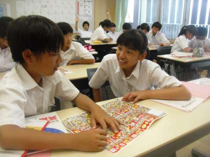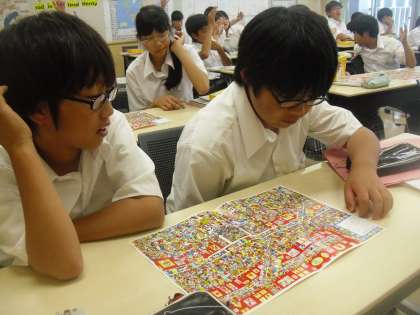 7年生は英語を学習していました。歌を歌った後に「Where is this?」を使いながら、絵の場所を探していました。