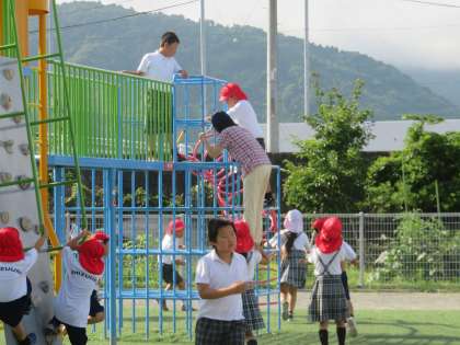 朝運動に先生方も子どもたちと一緒に活動しています。