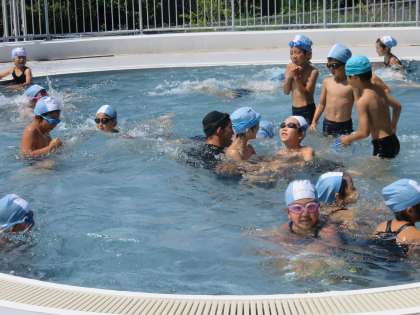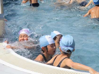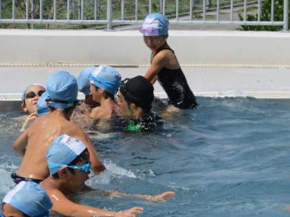 2A体育 水泳の授業です。プールがたいへん気持ちよさそうです。