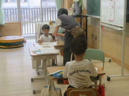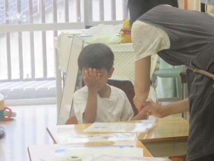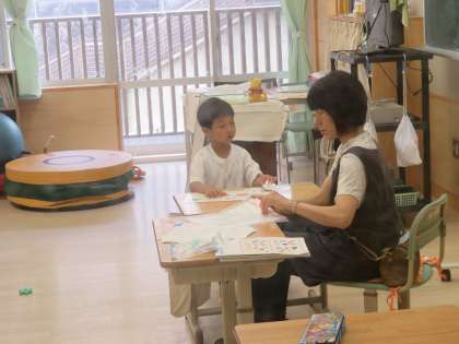 小C国語 同じ形の絵を合わせたり、発音の練習をしています。時間を決めて学習しています。