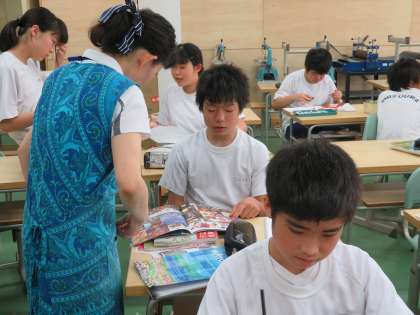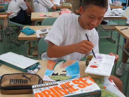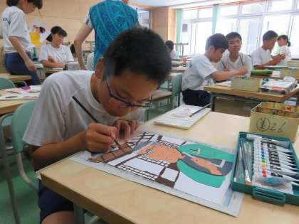 8A美術 浮世絵の顔を自分顔です。みんな工夫を凝らした浮世絵ができそうです。