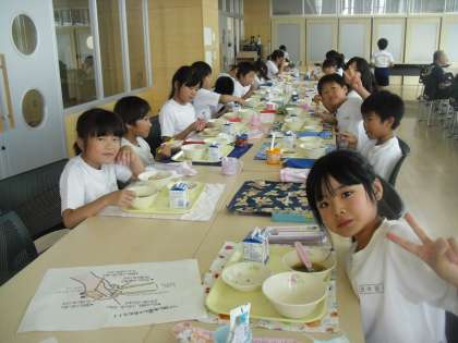 目的 異学年と交流し、楽しく給食を食べる。