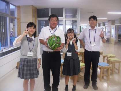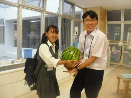 田方農業高校に進学した卒業生が、高校で育てたすいかを届けてくれました。誠にありがとうございました。卒業生の近況も聞くことができ、有意義なひとときとなりました。