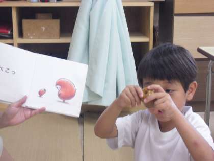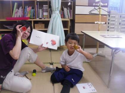 小Cの児童は絵本「だるまさん」を読みながら、模倣の活動をしました。