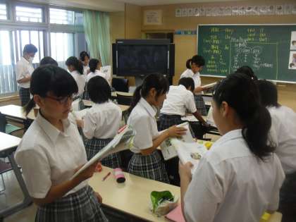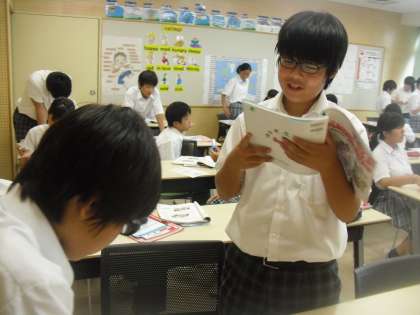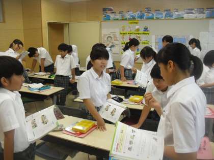 7年生は英語で本文の読み取りを行っていました。ALTと一緒に活動している子もいました。