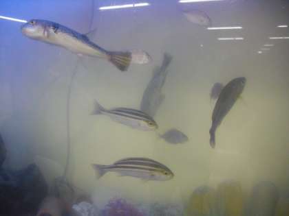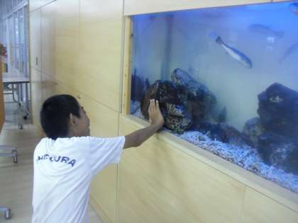今日の水槽の様子です。一昨日、静浦漁協青壮年部さんからいただいた魚が気持ちよさそうに泳いでいます。