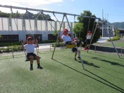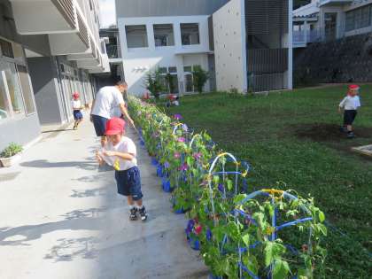 静浦農園やあさがおに水をあげたり、プレイグラウンドで遊んだり、子どもたちの笑顔がいっぱいです。
