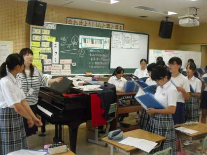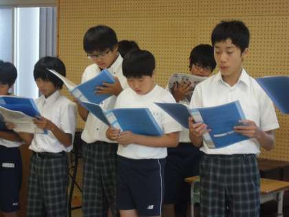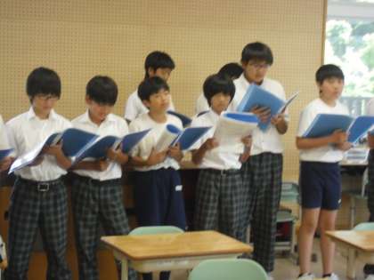 7年生は音楽でパートごとに分かれて合唱練習を行っていました。