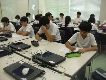 夏勉初日です。3〜6年希望者、7〜9年全員が夏勉を実施しました。