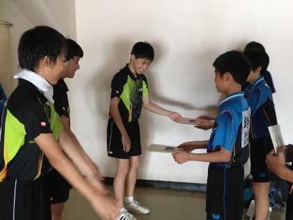中体連卓球個人戦が終了しました。下級生から先輩たちに色紙のプレゼントがありました。