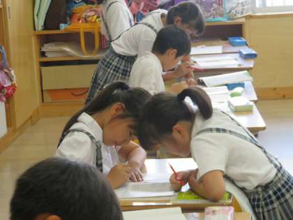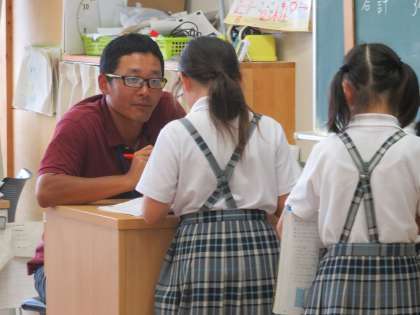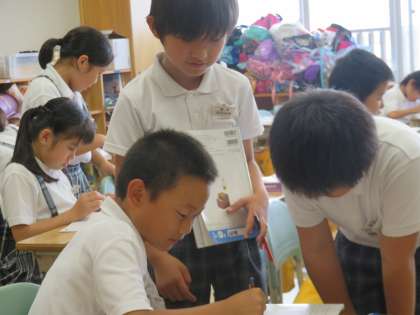 3A算数 表とグラフについての学習です。匡崇先生のところで確認しています。みんなで助け合い学習をしています。