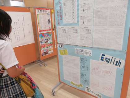 教室の気温を見ましたら、たいへんです。玄関でノートコンテストを実施しています。来校の折には、1年生から9年生までのノートをぜひ、ご覧ください。