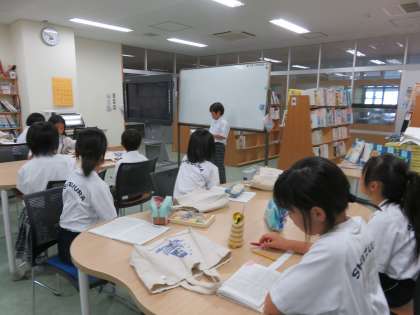 5A言読 ビブリオバトルのルールを確認してから実際に始めます。自分の読んだ本の特徴を仲間に紹介します。