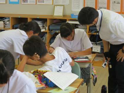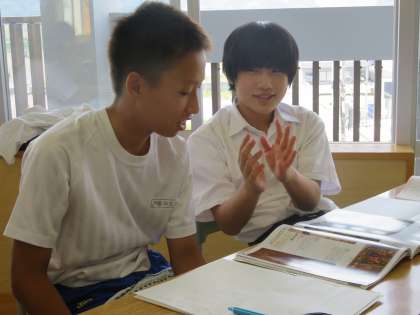 8A国語 自分の気に入った絵から詩を作ろう 自分たちで絵を選んで克憲先生が写真を撮ってくれています。