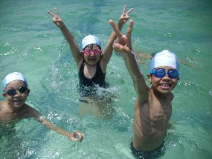 2年生は大プールに入り大喜びです。