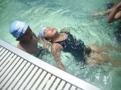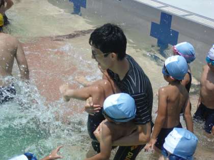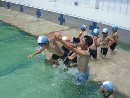 自由時間には、学級担任や他学年の先生たちと遊びました。ラッコの真似をする子もいました。