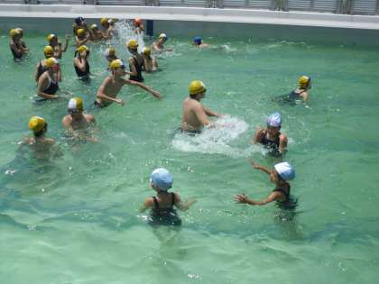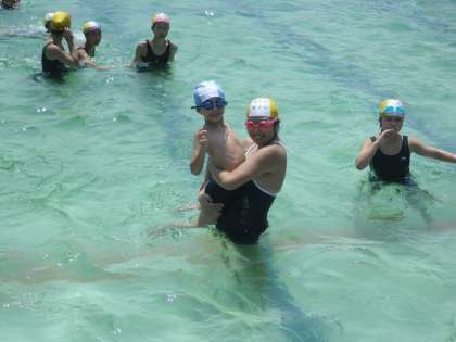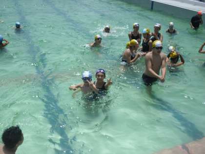 7年生は2年生と同じ時間に水泳を行いました。自由時間には2年生と一緒に活動していました。