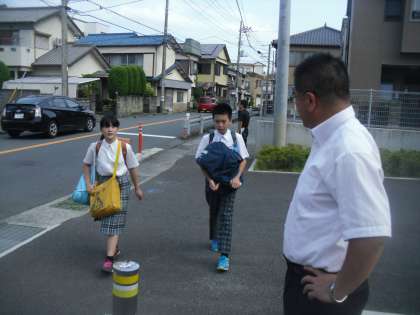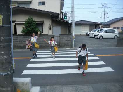 子どもたちが元気に登校してきました。大きな声であいさつを交わしていました。