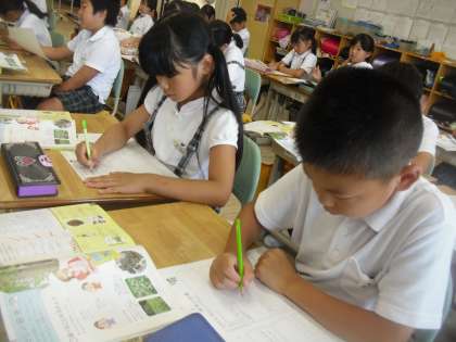3年生は学級活動の時間において、夏休みの生活について学級担任と一緒に確認しました。